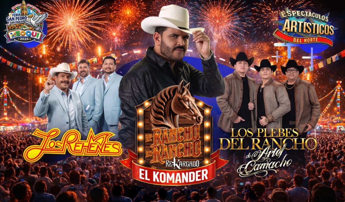 El Komander, Los Rehenes y Los Plebes del Rancho presentes en la Feria San Pedro y San Pablo 2026 de Meoqui