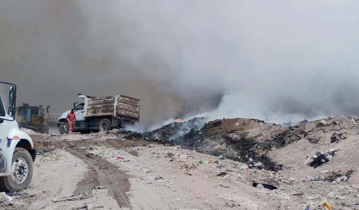 Continúan maniobras en incendio de Relleno Sanitario Regional en Meoqui, participan 5 municipios y Estado