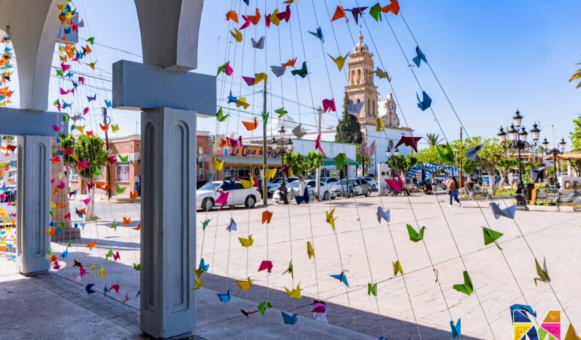 Comparten más de 700 poemas en aves de Origami colocados en los portales de la Presidencia Municipal En…