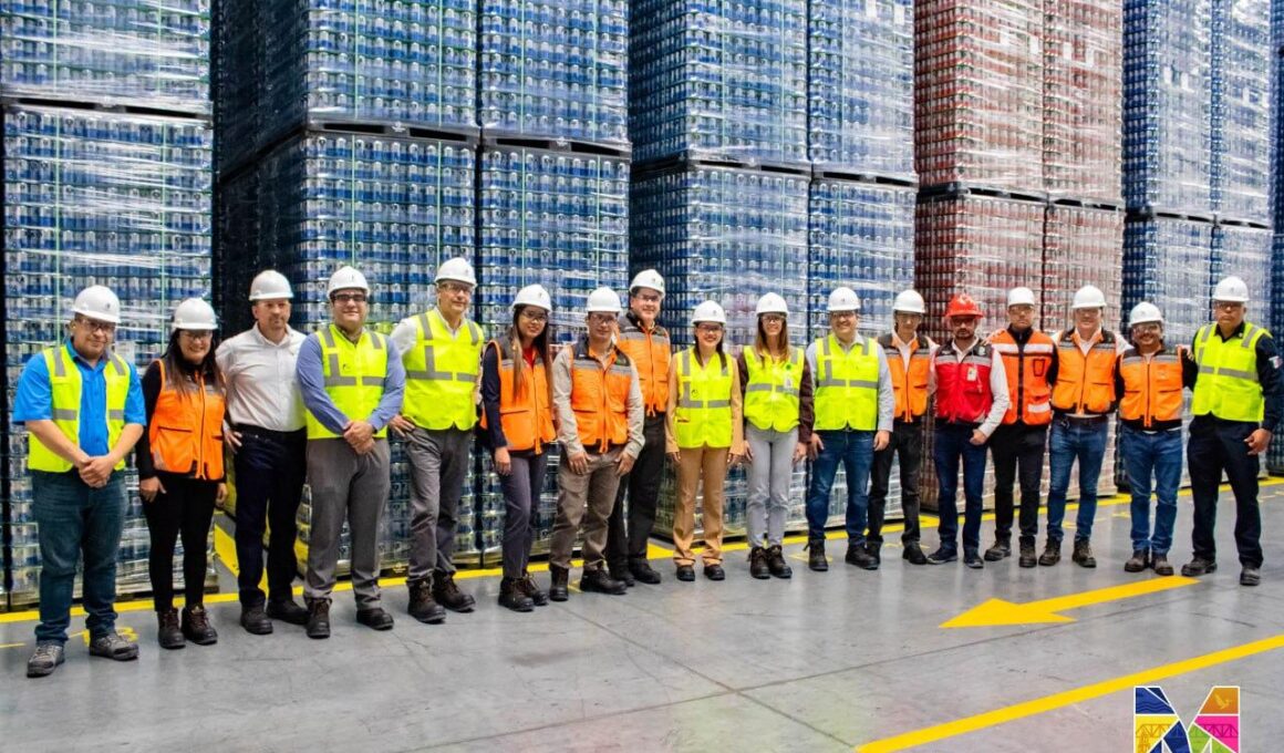 Recorren Miriam Soto y ejecutivos de Heineken México nueva línea de latas en Planta Meoqui