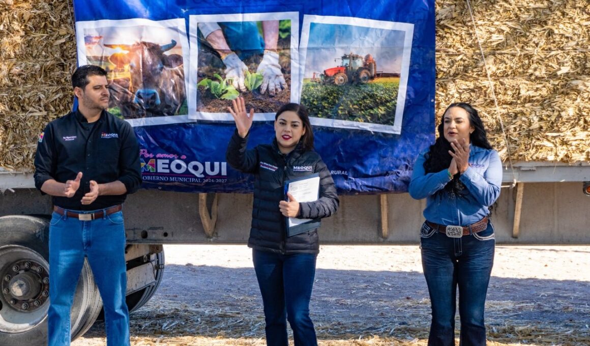 Apoyan a productores meoquenses, encabeza Miriam Soto entrega de pacas de rastrojo en Coordenada 99 en Meoqui