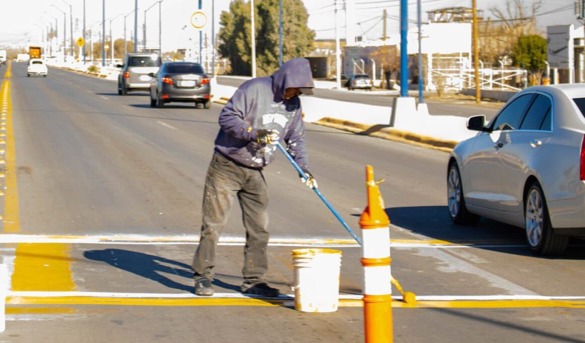 Realiza DSPM Meoqui rehabilitación de pintura vial en Cárdenas y cabecera municipal