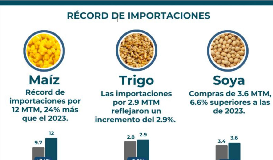 Aumento récord en Importaciones de maíz, trigo y soya impacta en la economía de millones de productores