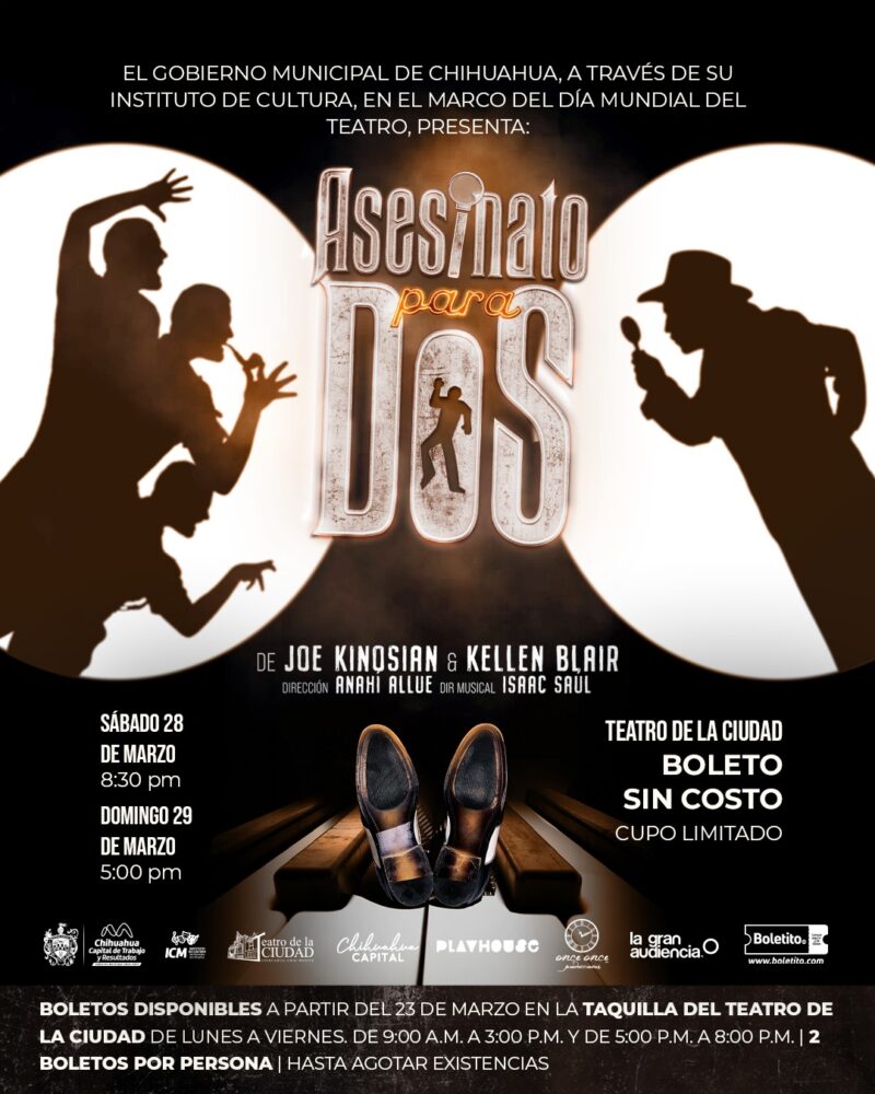 H. Ciudad de Chihuahua, Chih., a 23 de marzo de 2026.– El Gobierno Municipal de Chihuahua, a través del Instituto de Cultura, invita a celebrar el Día Mundial del Teatro con la presentación de dos destacadas obras escénicas que se ofrecerán sin costo para el público, con el objetivo de acercar espectáculos de calidad a las familias chihuahuenses y fomentar el acceso a la cultura.