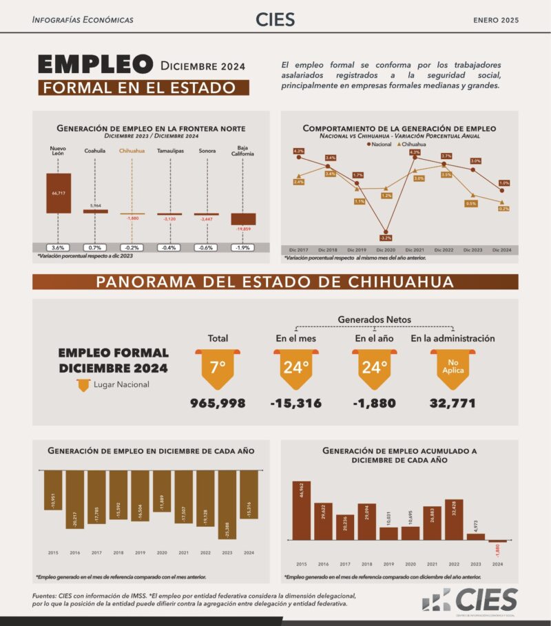 Chihuahua cierra 2024 con pérdida de empleo; la región norte mantiene liderazgo nacional