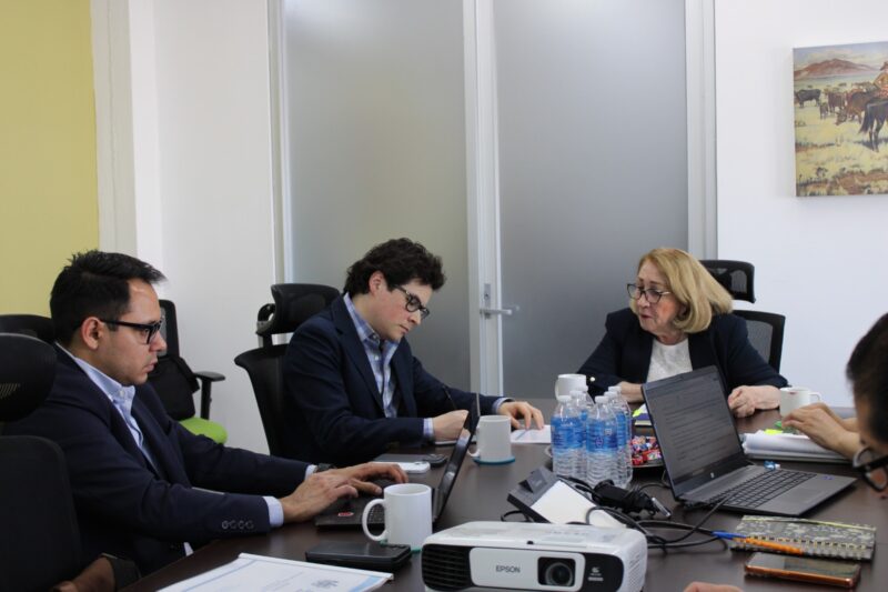 La Tesorera Municipal, Amanda Córdova, en compañía de las subdirectoras de Ingreses y Egresos, se reunieron con el equipo de Fianzas Públicas de la calificadora HR Ratings, para cumplir con la revisión anual de evaluar las finanzas del Municipio.