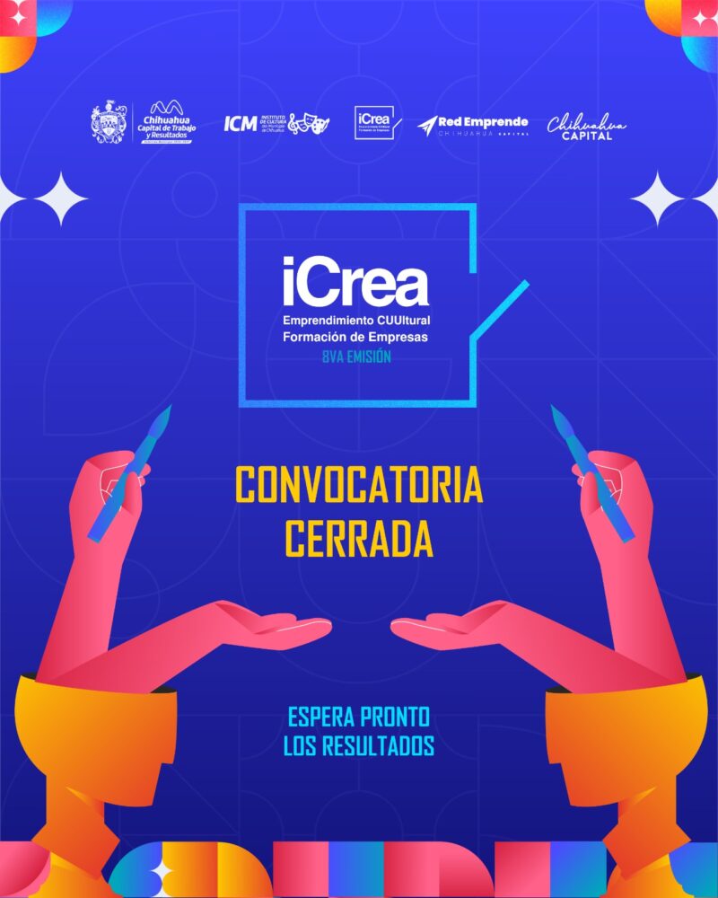 H. Ciudad de Chihuahua, Chih., a 1 de abril de 2026.- El Gobierno Municipal de Chihuahua, a través del Instituto de Cultura, informa el cierre de la convocatoria “iCREA Emprendimiento Cultural – Formación de Empresas”, en su octava edición, la cual registró 37 proyectos para beneficio de artistas, creadores y emprendedores al fortalecer sus capacidades de negocio dentro del sector cultural.