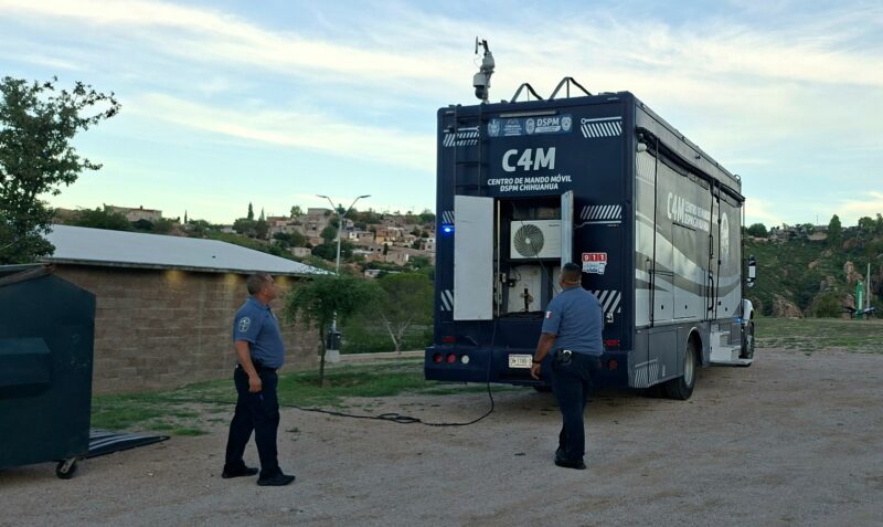 H. Ciudad de Chihuahua, Chih., a 3 de agosto de 2025.- La Dirección de Seguridad Pública Municipal (DSPM) cuenta entre su parque vehicular con un camión adaptado especialmente como centro de mando para coordinar eventos extraordinarios que reúnen multitudes y que trabaja directamente conectado al Centro de Monitoreo y Operaciones (CMO) de la Comandancia Norte con el fin de lograr intervenciones exitosas, conforme a la política de seguridad del actual Gobierno Municipal.