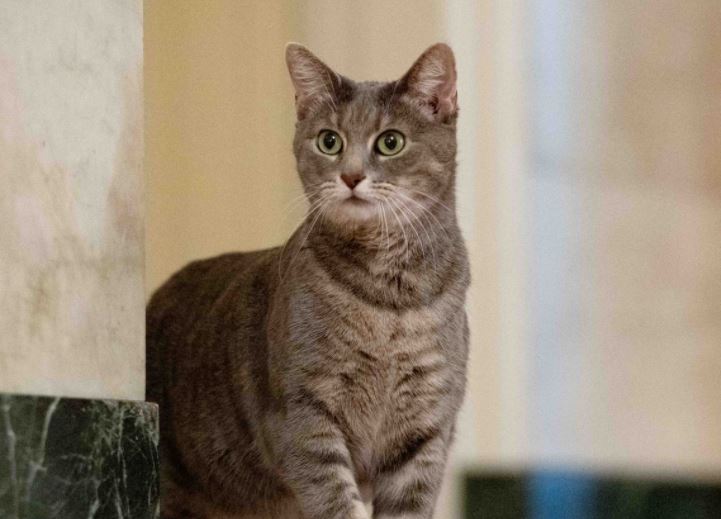 Las imágenes publicadas por la primera dama en Twitter muestran a la mascota de rayas grises y blancas merodeando en el esplendor de la alfombra roja de la residencia presidencial.