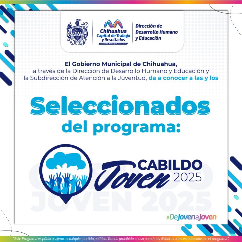 H. Ciudad de Chihuahua, Chih., a 7 de julio de 2025.- El Gobierno Municipal de Chihuahua, a través de la Dirección de Desarrollo Humano y Educación y su Subdirección de Atención a la Juventud, da a conocer a los ganadores para participar en Cabildo Joven en su edición 2025.