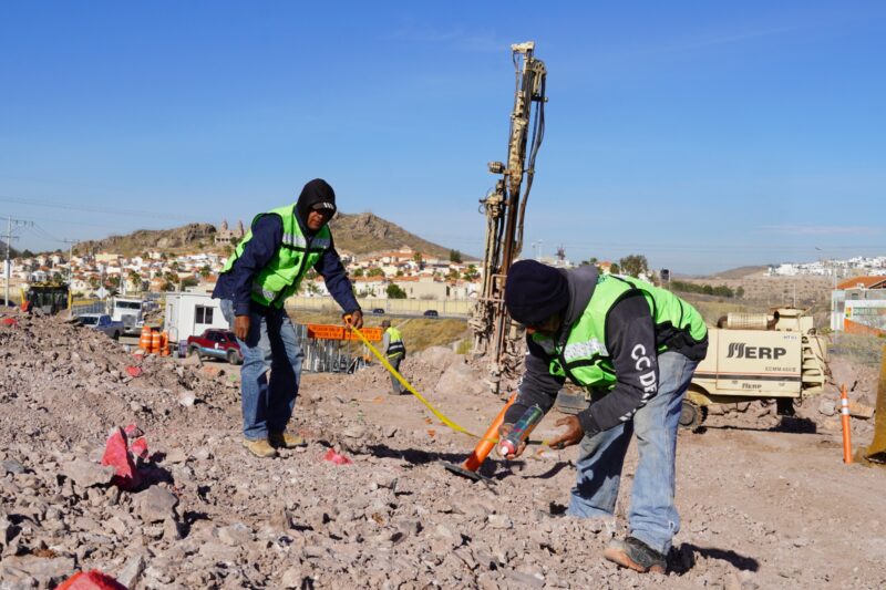 Actualmente, las cuadrillas trabajan en distintos frentes, realizando labores de excavación en la rampa de inicio y en las isletas a la altura del boulevard Ortiz Mena para la conformación de la nueva lateral del periférico de la Juventud. Además, se efectúa el trazo para la reubicación de la línea de conducción de agua potable.