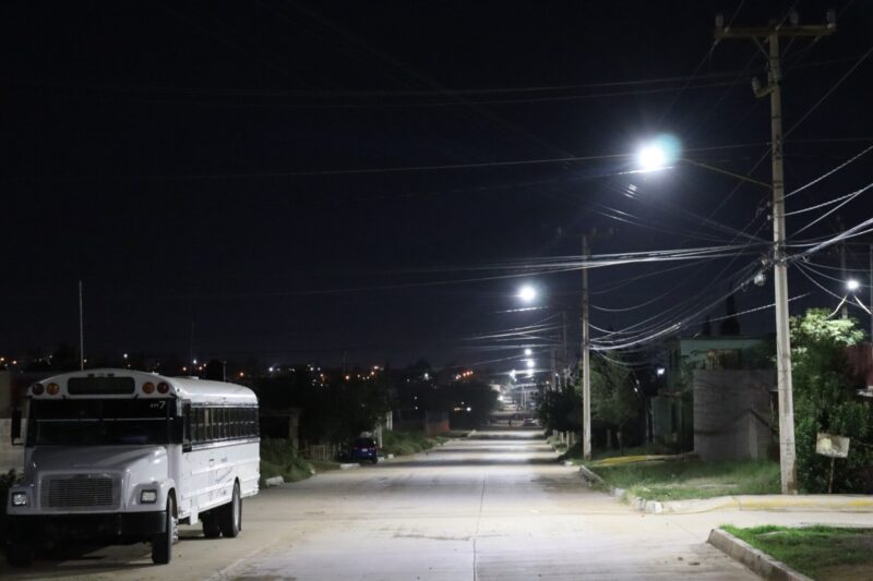 En esta colonia se realizó la sustitución de 60 luminarias antiguas de vapor de sodio por luminarias modernas de luz blancas estilo LED. Las labores de modernización del alumbrado público en la capital se continúan realizando de manera diaria y constante, en colonias y parques de la ciudad.