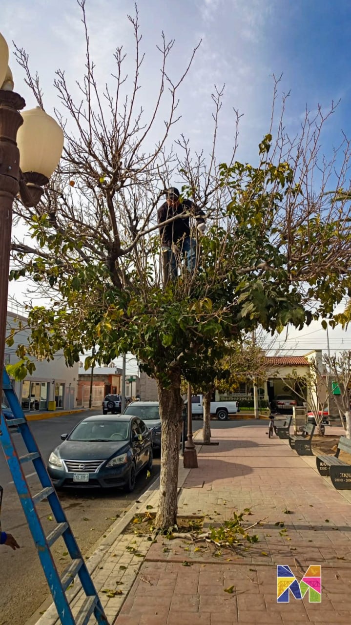 El Gobierno Municipal de Meoqui continúa con los trabajos de poda y mantenimiento en parques, plazas y áreas verdes, como parte de las acciones permanentes para conservar en buen estado los espacios públicos del municipio, así lo informó el Ing. Noé Legarreta, director de Servicios Públicos Municipales, mencionando que estas labores iniciaron desde el pasado 15 de diciembre por indicaciones de la alcaldesa Miriam Soto, y actualmente ya concluyeron en las plazas principales.