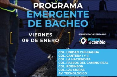 Atenderá Municipio con bacheo ocho zonas este viernes 9 de enero