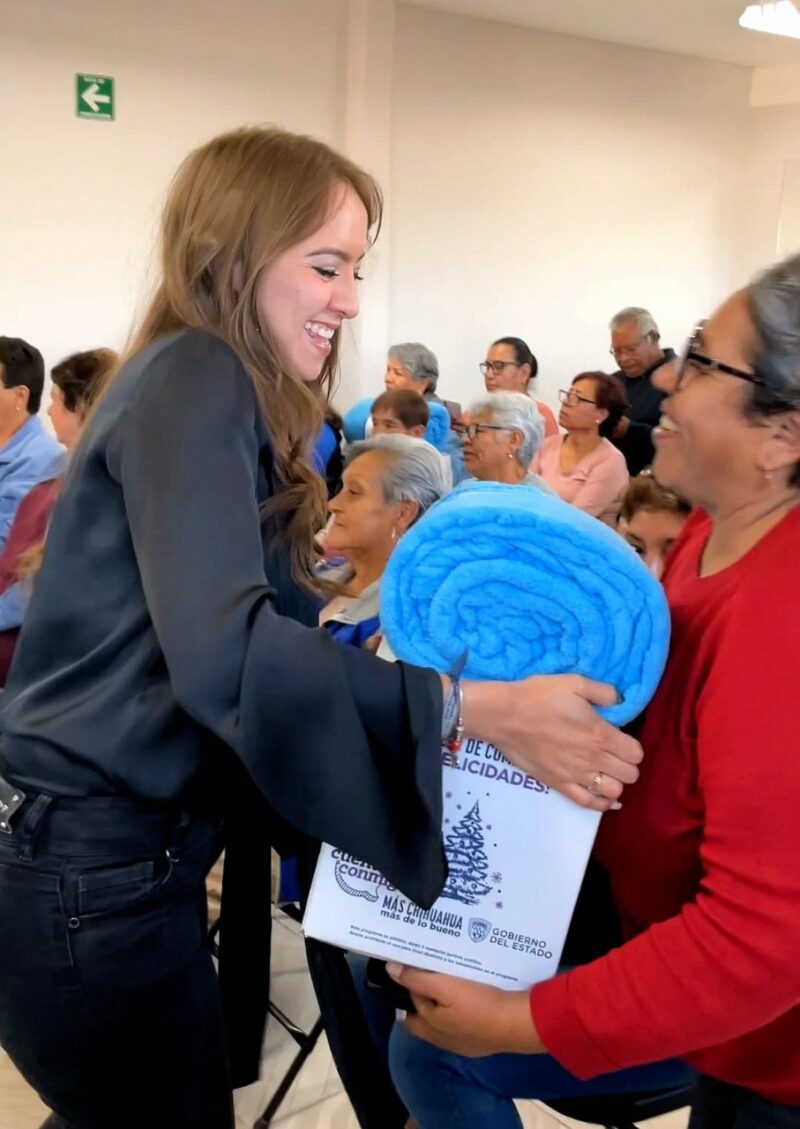 Durante su visita, la diputada agradeció el apoyo de la gobernadora Maru Campos con relación a las gestiones que le ha solicitado, pues siempre ha tenido una grata respuesta, es por ello que se hizo la entrega de apoyos alimentarios con productos de la canasta básica y cobijas para los adultos mayores.