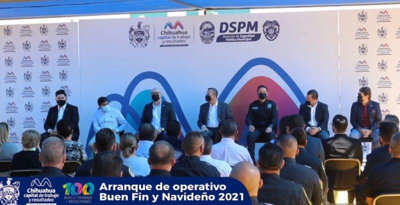 El presidente municipal de Chihuahua, Marco Antonio Bonilla, dio a conocer que serán 600 agentes de seguridad pública, cámaras de seguridad, el Halcón 1 y la Mamba, parte de este operativo para proteger a las y los trabajadores que perciben sus aguinaldos en este 2021.
