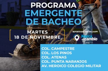 Atenderá Municipio con bacheo cinco zonas este martes 18 de noviembre