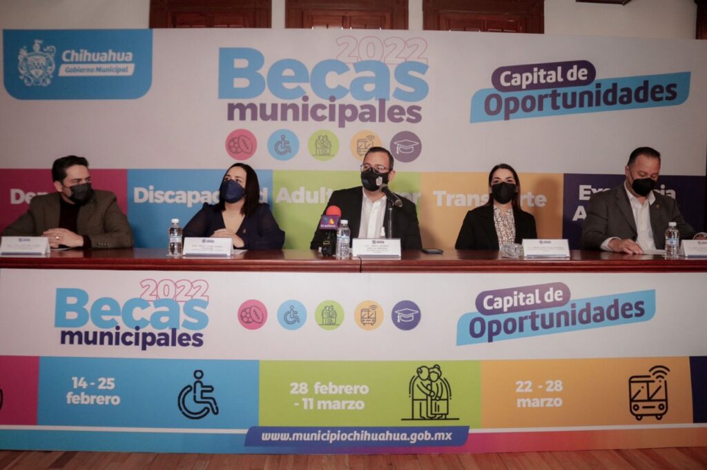 El Alcalde de Chihuahua informó que se destinará un total de 77 millones de pesos a los cinco programas de Becas del Gobierno Municipal en las modalidades de Excelencia Académica, Transporte, Discapacidad, Deportiva y Alimento al Adulto Mayor; de los cuales, unos ya cerraron convocatoria, otros están en proceso y unos están por iniciar con la recepción de documentación.