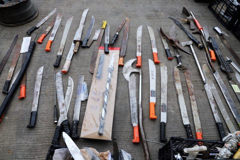 Entre los objetos se encontraban machetes, navajas, picahielos y hasta bates de béisbol
