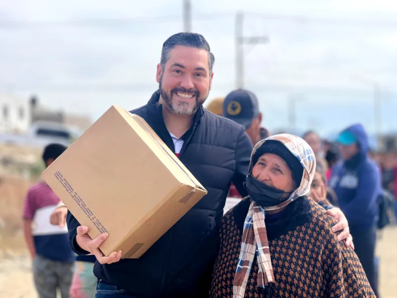 En el marco de las fechas decembrinas el diputado Edgar Piñón, como parte de sus acciones de apoyo ciudadano, dio continuidad a la entrega de paquetes alimenticios y cobijas en las inmediaciones de este sector habitacional en la ciudad de Parral, beneficiando a 40 familias, entre ellos adultos mayores.