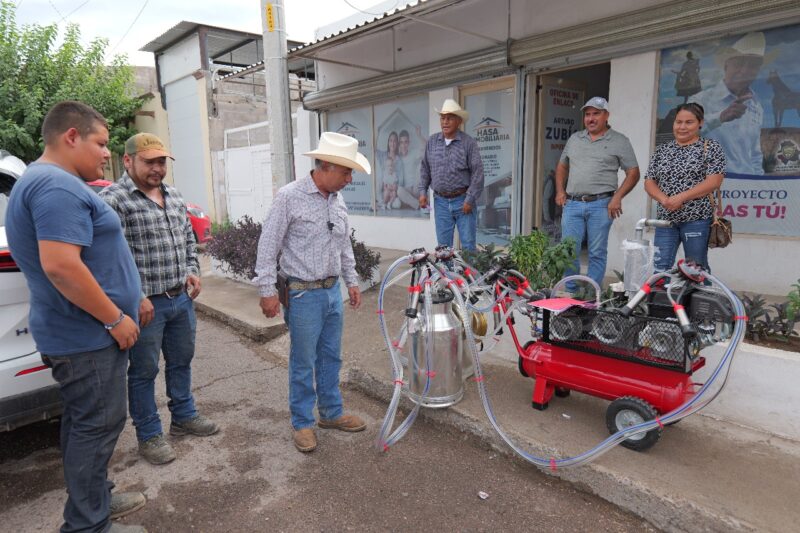 Camargo, Chih.– Como parte del Programa de Transferencia de Tecnología de la Secretaría de Desarrollo Rural del Gobierno del Estado, el diputado Arturo Zubia hizo entrega, en la oficina de enlace de Camargo, de un apoyo a David Ramos, uno de los primeros beneficiarios de este esquema, con el propósito de modernizar el sistema de ordeña que él y su familia utilizan en su producción.