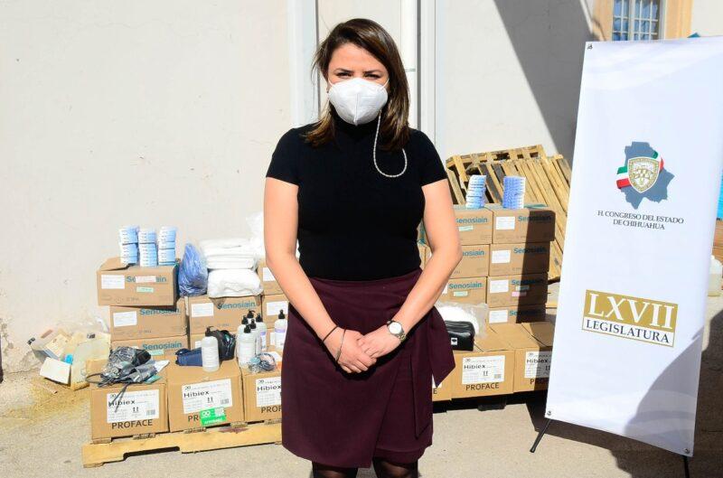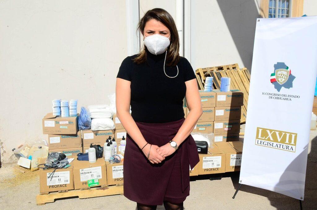 La diputada por el Distrito 12 Geo Bujanda, donó insumos médicos al Hospital Central de Chihuahua consistentes en 3500 cubrebocas, 3600 unidades de Miccil, medicamento que se utiliza para la hipertensión; 180 frascos de solución salina; termómetros, baumanómetros, batas y botas quirúrgicas y varios cubre colchones.