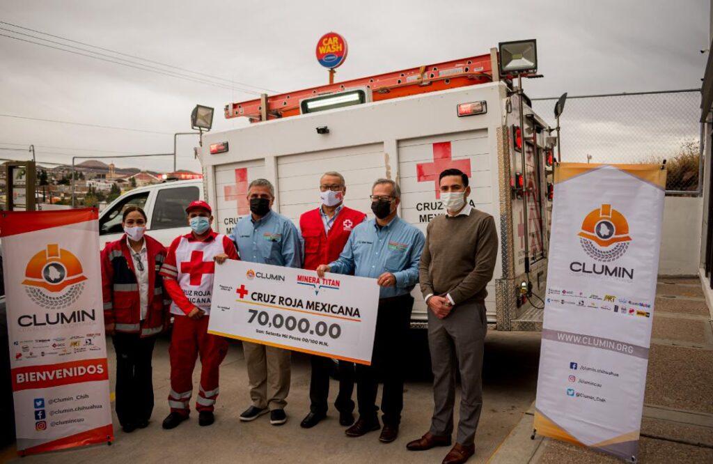 La empresa Minera Titán a través del Clúster Minero de Chihuahua CLÚMIN, realizó la donación de 70 mil pesos a la Delegación Estatal de la Cruz Roja, recurso que será utilizado para darle mantenimiento a las unidades.