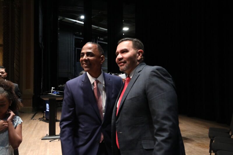 El evento, denominado «Ceremonia de Liderazgo de la Ciudad», se llevó a cabo en el Teatro Plaza, ubicado en el centro de la ciudad vecina.