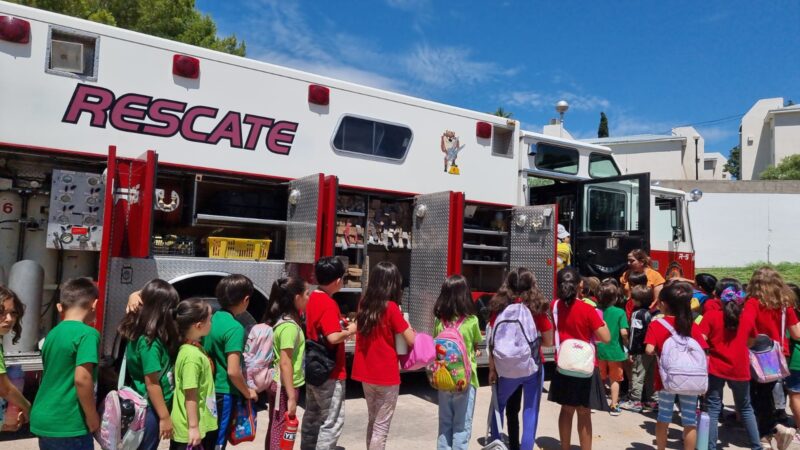 También les mostraron cada uno de los diferentes componentes del equipo de protección personal que utilizan en su trabajo y que fueron colocándose pieza por pieza para luego invitarlos a portarlo y se dieran una idea del peso y la dificultad de caminar con él.