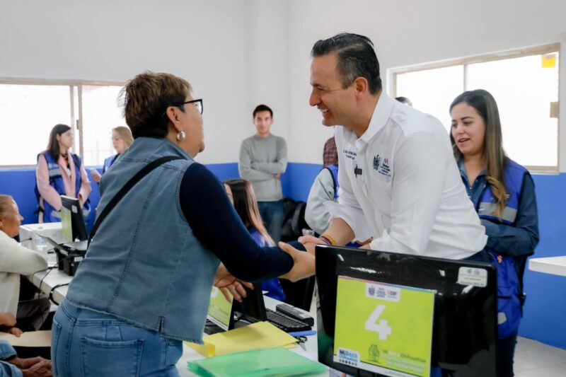 A su arribo el alcalde Bonilla saludó a cada uno de los solicitantes que esperaban turno en Centro Comunitario Riberas de Sacramento, que como muchos otros se han convertido en mesas de recepción de documentos.