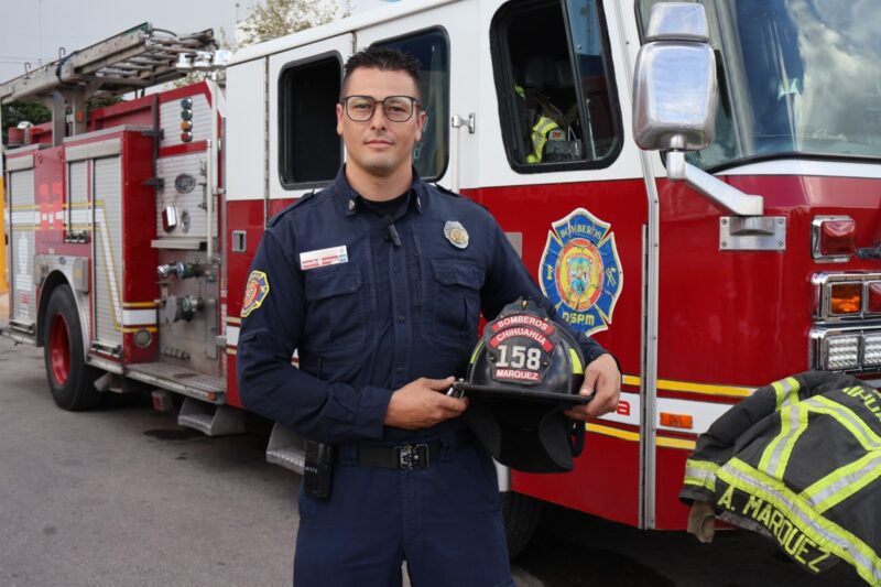 H. Ciudad de Chihuahua, Chih., a 30 de agosto de 2025.- Entrar al H. Cuerpo de Bomberos del Municipio de Chihuahua no estaba en sus planes, mucho menos llegar a ser nombrado Bombero del Año 2025, sin embargo, a 6 años de haber ingresado a la corporación, el bombero Erick Alonso Márquez Cruz supo ganarse el aprecio de sus compañeros y lograr que su trabajo fuera reconocido al grado de ganarse tal distinción.