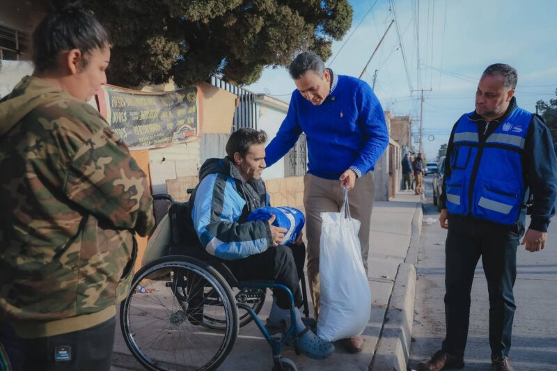 Entrega alcalde Marco Bonilla cobijas y despensas a familias de la colonia Tarahumara