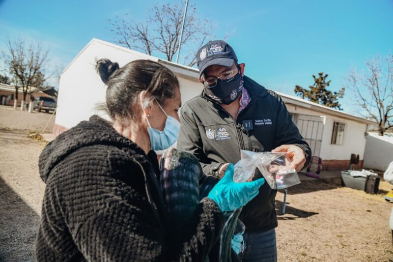 El alcalde Marco Bonilla Mendoza encabezó el arranque de la entrega de paquetes invernales a los pobladores del seccional El Sauz, cuya distribución se llevará a cabo esta semana para apoyar a la ciudadanía en esta temporada.