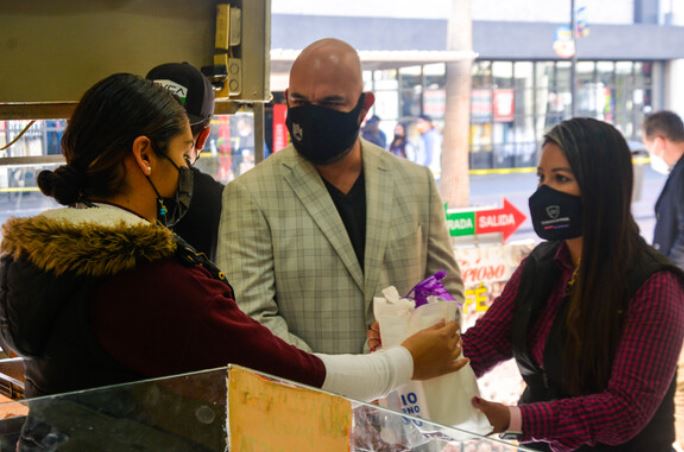 En colaboración con miembros de la Asociación de Comerciantes del Centro (Cocentro), se dotó de insumos a las empresas para proteger a su clientela y a su personal, y así evitar el incremento de contagios por COVID-19.