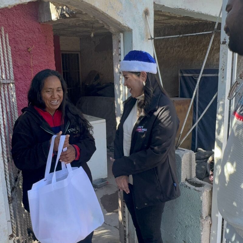 Chihuahua, Chih.- En un gesto de solidaridad y compromiso con la comunidad, la diputada por el Partido Acción Nacional (PAN), Nancy “La China” Frías, en colaboración con el Sistema para el Desarrollo Integral de la Familia (DIF) Municipal, entregó cenas navideñas a vecinos del Distrito 12, reafirmando su apoyo a las familias más vulnerables durante esta temporada.