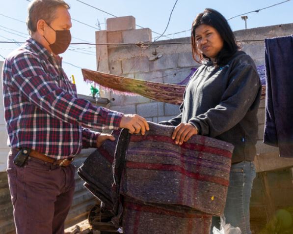 Para brindarles abrigo y protegerlos de las inclemencias del frío, pues su casa no cuenta con puertas ni ventanas, se les hizo entrega de 2 cobijas, prendas de ropa y tramos de hule negro; asimismo, recibieron un apoyo alimentario y enseres domésticos.