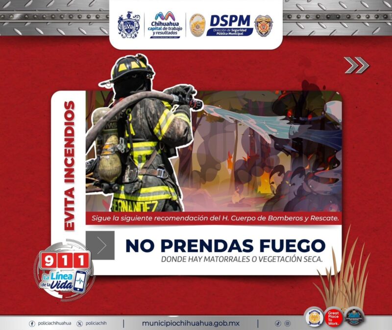 H. Ciudad de Chihuahua, Chih., a 20 de enero de 2026.- El H. Cuerpo de Bomberos exhorta a evitar quemar basura, pastizales o cualquier tipo de material a cielo abierto, ya que esta práctica representa un alto riesgo de provocar incendios que pueden salirse de control y poner en peligro a personas, viviendas y el medio ambiente.