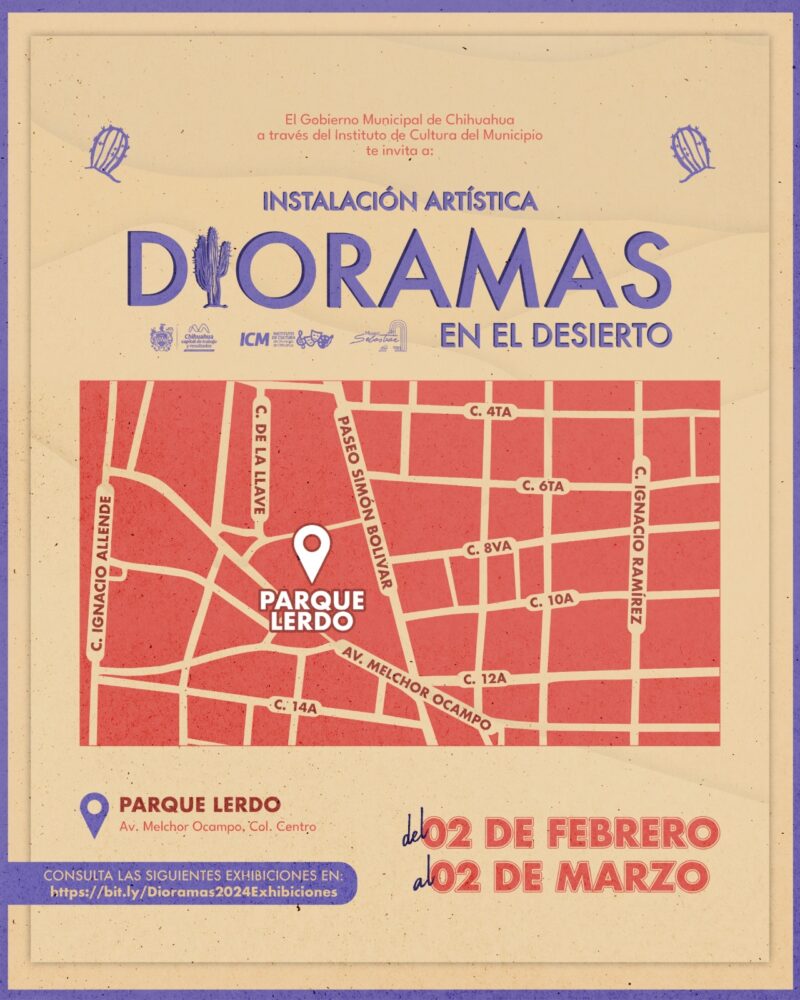 Chihuahua, Chih., a 31 de enero de 2025.- El Instituto de Cultura del Municipio, informa que, del 2 de febrero al 2 de marzo, estará disponible la exposición “Dioramas en el Desierto” en el Parque Lerdo, ubicado en avenida Melchor Ocampo, colonia Centro.