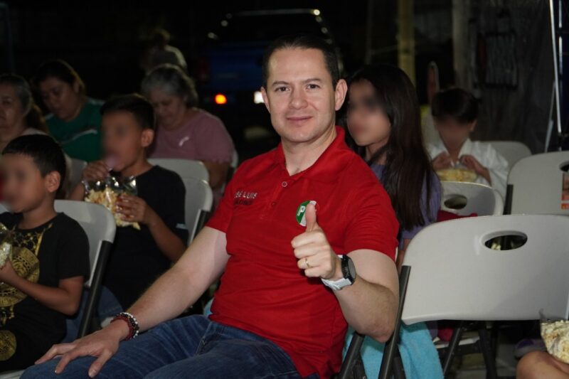 Chihuahua, Chih.— Con el objetivo de promover la convivencia vecinal y recuperar los espacios públicos, el diputado José Luis Villalobos llevó el programa “Al Cine con Villalobos” a la colonia Colinas del Sol, donde compartió una tarde de entretenimiento con decenas de familias. En el evento también participó la regidora Rosy Carmona, representante del PRI en el Ayuntamiento de Chihuahua.