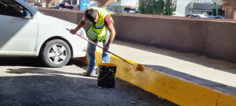 La Dirección de Mantenimiento Urbano, culminó los trabajos de pintura en las guarniciones y muros de concreto de los puentes ubicados en la avenida Teófilo Borunda, en sentido oriente a poniente.