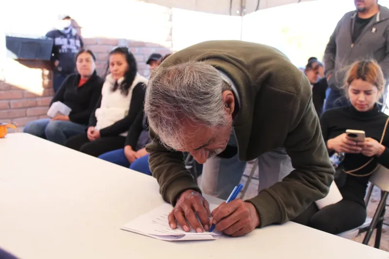 Firma JMAS Chihuahua con vecinos de Granjas Cerro Grande convenio para la introducción de alcantarillado sanitario