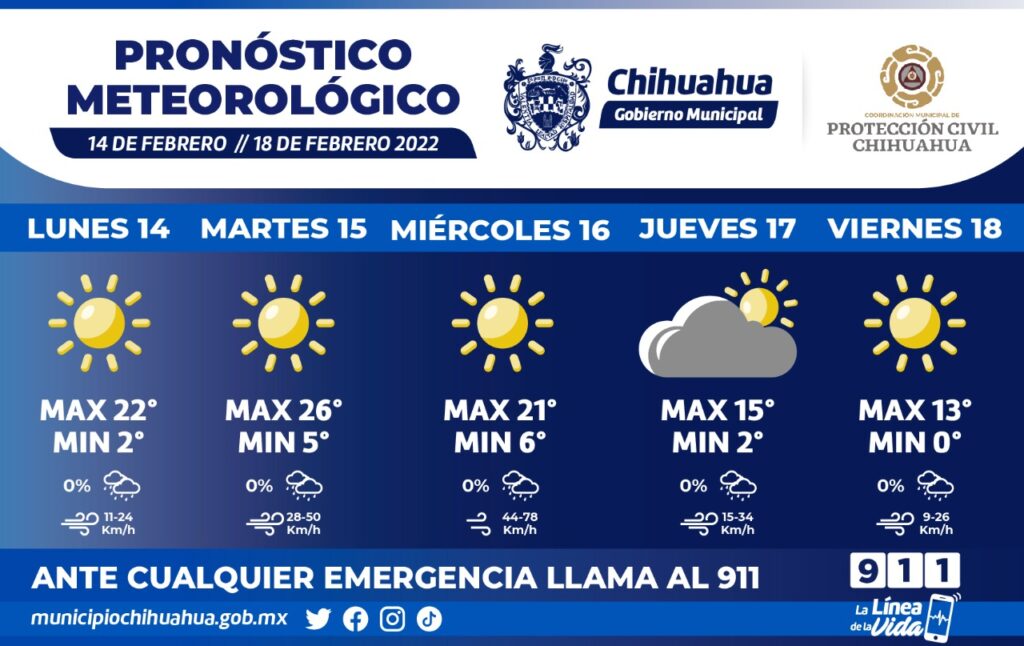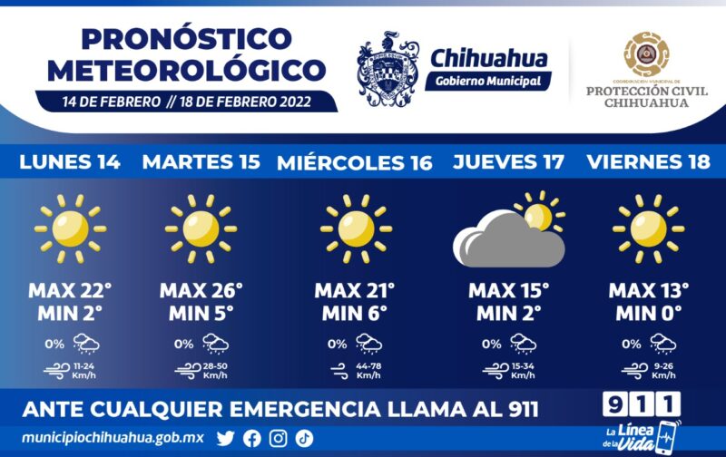 Un nuevo frente frío podría traer temperaturas mínimas entre los 2°C y los 0°C para el jueves y viernes, respectivamente además de fuertes vientos con ráfagas de hasta 50 y 78 km/h para el martes y miércoles, respectivamente, según el pronóstico del Servicio Meteorológico Nacional difundido por la Coordinación Municipal de Protección Civil.
