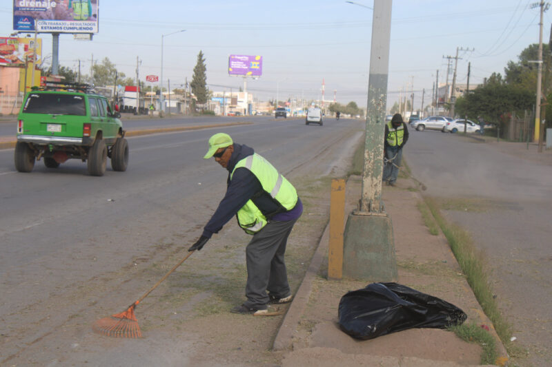 Con cuadrillas manuales se trabaja en corte de hierba, sopleteo, papeleo y pepena de las principales calles y avenidas, de donde se ha retirado tal cantidad que supera la recolectada en otros meses.