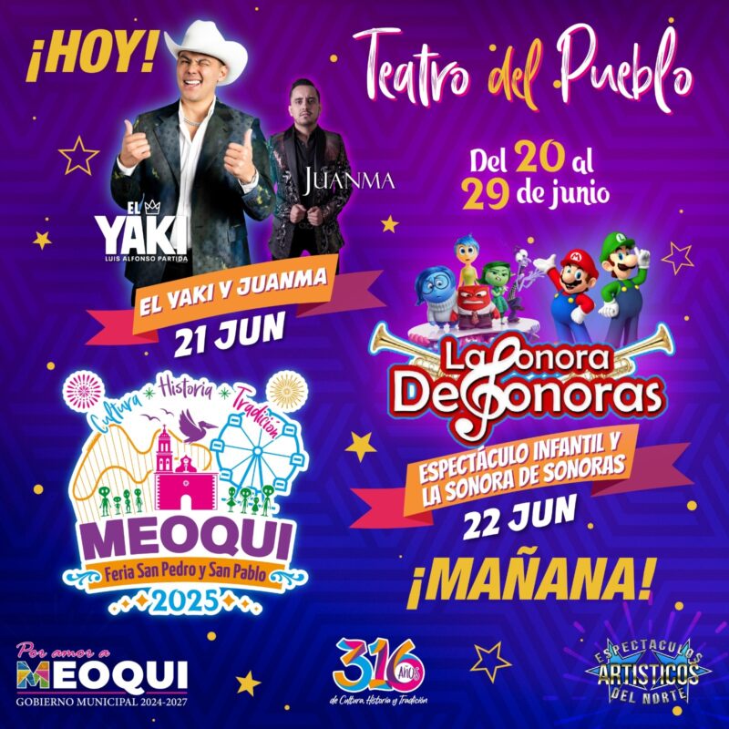 Este sábado 21 de junio, Meoqui vivirá una de las noches más esperadas dentro de la Feria San Pedro y San Pablo Meoqui 2025, con la presentación estelar de Luis Alfonso “El Yaki”, quien llegará al escenario para deleitar al público con sus más grandes éxitos como “Dime Para Qué”, “Nomás Este Rey”, “Ya Te Perdí La Fe” y más.