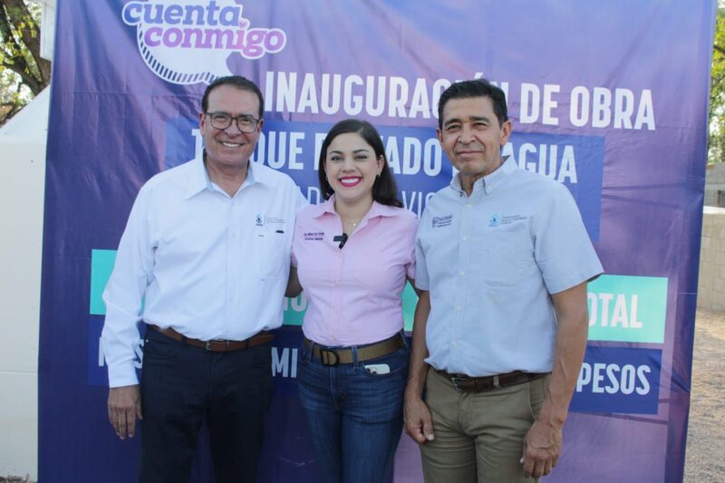 La alcaldesa de Meoqui Miriam Soto, el Director General de la Junta Central de Aguas Mario Mata, la JMAS y la JRAS inauguraron un nuevo tanque elevado en el seccional de Guadalupe Victoria, con una inversión de más de 4.5 millones de pesos, el cuál beneficiará a más de 500 familias de la zona.