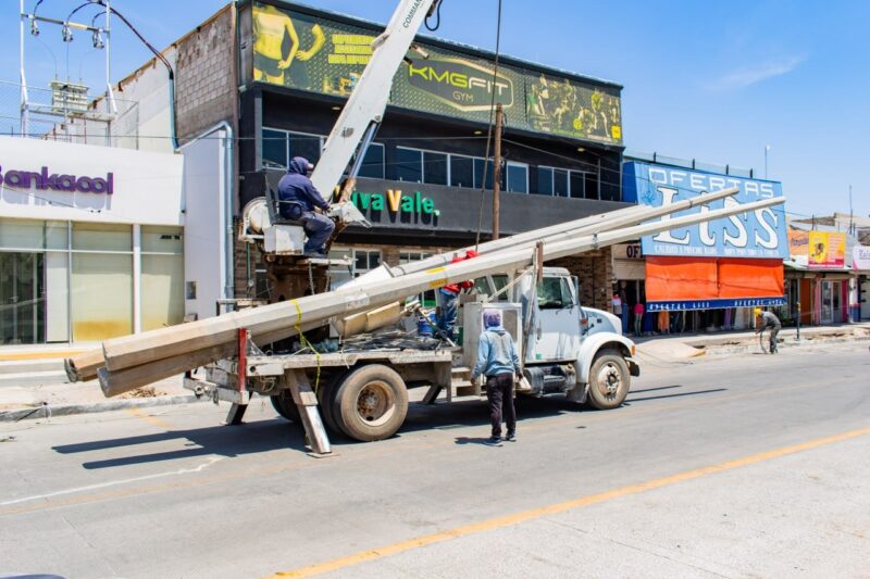 Inicia retiro de postes en el Paseo Zaragoza de Meoqui