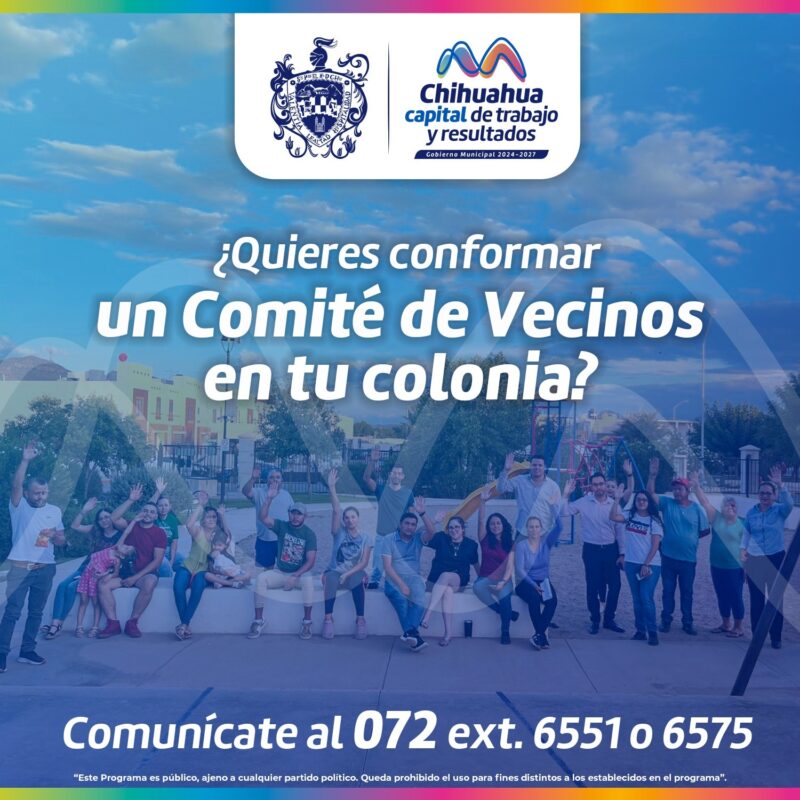 Para iniciar la conformación de un comité vecinal, los interesados deberán comunicarse al 072 o al 614-248-00-00, extensiones 6551 y 6536 con atención directa al Departamento de Comité de Vecinos, en un horario de 8:30 a 15:30 horas de lunes a jueves y viernes de 8:30 a 14:00 horas.