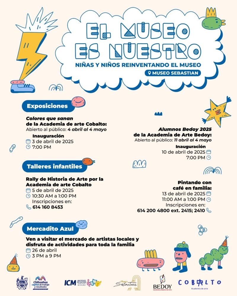Chihuahua, Chih., a 1 de abril de 2025.- El Gobierno Municipal, a través del Instituto de Cultura del Municipio, invita a las familias chihuahuenses a celebrar el Día de la Niñez con una serie de actividades especiales en el Museo Sebastián, donde los pequeños podrán crear y reinventar el espacio museístico a través de experiencias lúdicas y artísticas.