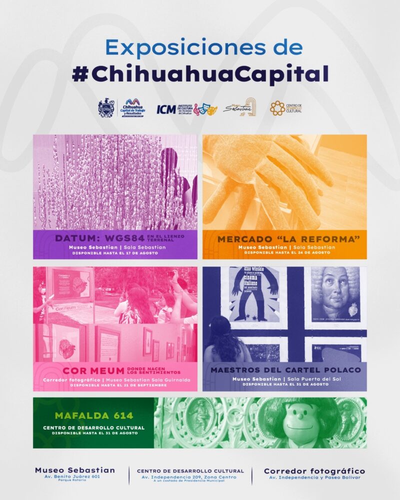 H. Ciudad de Chihuahua, Chih., a 5 de julio del 2025.- El Gobierno Municipal de Chihuahua, a través del Instituto de Cultura del Municipio, invita a disfrutar de las distintas exposiciones que actualmente se encuentran vigentes en sus recintos culturales, ofreciendo propuestas artísticas para todos los públicos y con entrada libre.
