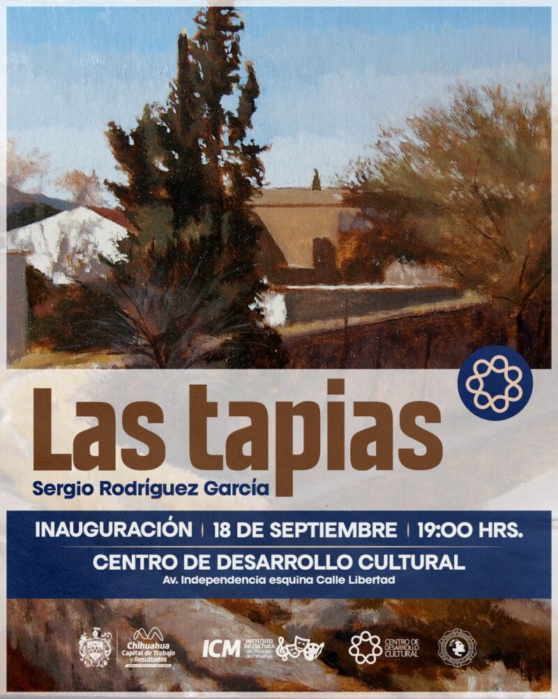 H. Ciudad de Chihuahua, Chih., a 17 de septiembre de 2025.– El Gobierno Municipal de Chihuahua, a través del Instituto de Cultura del Municipio, invita a la inauguración de la exposición Las Tapias del artista Sergio Rodríguez García, que tendrá lugar este jueves 18 de septiembre a las 19:00 horas en el Centro de Desarrollo Cultural, ubicado en la avenida Independencia esquina con Calle Libertad.